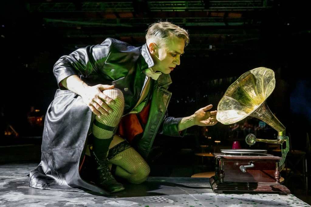 IN EARLY JUNE, the Atlanta Opera offered Kander and Ebb’s Cabaret at the Pullman Yards—a cavernous, un-airconditioned 1904 industrial building that lies just southeast of downtown Atlanta at the edge of historic Candler Park (seen June 12). The show was part of AO’s Discoveries Series, an initiative to bring new audiences to unconventional spaces and a departure from the traditional “ivory tower” of the opera house. Cabaret is definitely not an opera: it’s a Broadway musical about a young aspiring writer from America, Clifford Bradshaw, who arrives in Berlin on New Year’s Eve 1929, during the final years of the Weimar Republic. AO artistic and general director Tomer Zvulun gathered an edgy ensemble of singers, dancers, and jazz musicians, giving a compelling rendition of a show that’s eerily relevant today. Atlanta’s show made this amalgamation of flashy show tunes, mundane romance unraveled and unremarkable dialogue a commentary on otherness and acceptance.